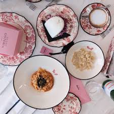 So what does a Prada man or woman eat, and what are they wearing for the occasion? Fashion brands have assured that no matter what season or combination of pieces, their essence is preserved. Cafes and restaurants become like movie sets with custom wallpaper, furniture, and art. Menus take into account the brands heritage and that of their clients.